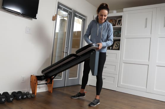 FliPBENCH folds up flat in opposition to the wall when not in use, making it excellent for residence gyms.
